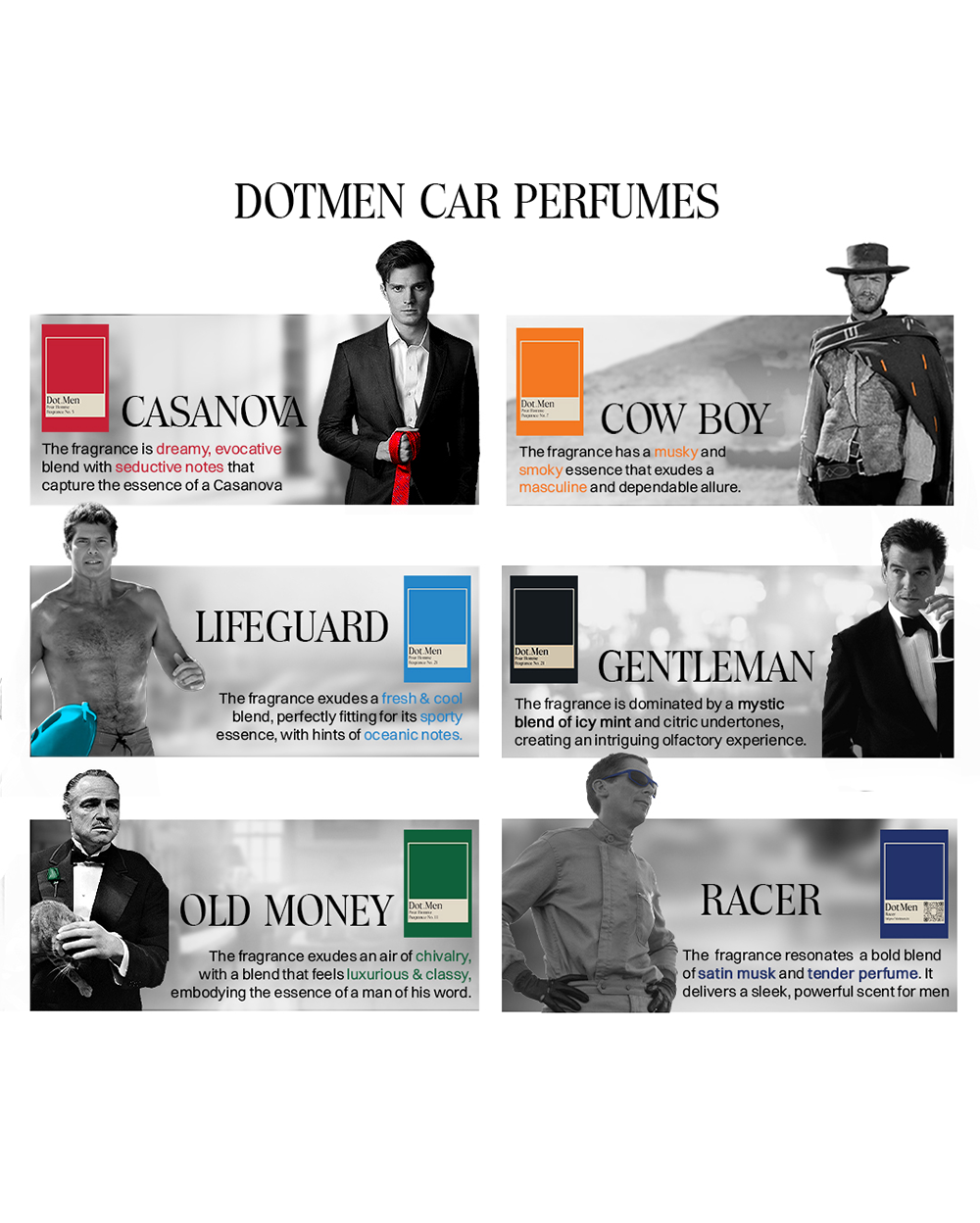 Experience a refined and consistent fragrance experience with DotMen masculine car perfumes.