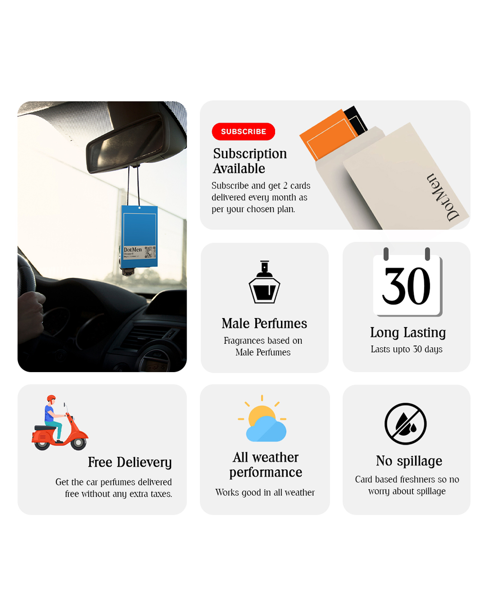 Experience a refined and consistent fragrance experience with DotMen masculine car perfumes.